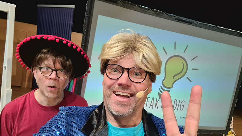 Med musik, humor och tankeställare presenterar Kunskapsteatern en interaktiv föreställning som ger både svar och nya frågeställningar om fake news, källkritik och sociala medier.