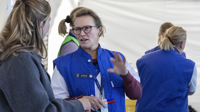 – Inne på sjukhuset är vi också vana att ha all service nära. Här har vi mycket bra grejer, men man får också hitta nödlösningar och vara uppfinningsrik, säger Katrin Eriksson, avdelningschef för övningens vårdavdelning.