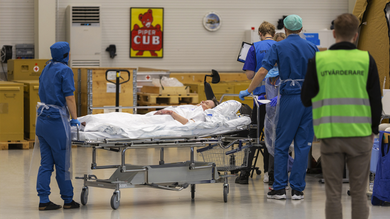 Övningens scenario var utmanande: En fiktiv konflikt i Europa där civila och militära skadade evakueras från krigsdrabbade områden till Sverige med luftbro.