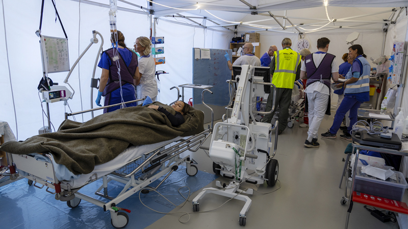Full aktivitet i övningens intensivvårdsavdelning.
