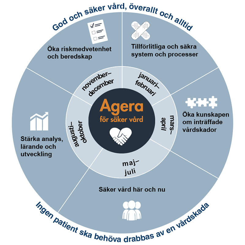 Patientsäkerhetsveckor - Skapa struktur för att dela goda exempel inom patientsäkerhets- och förbättringsarbeten, såväl inom som mellan verksamheter.